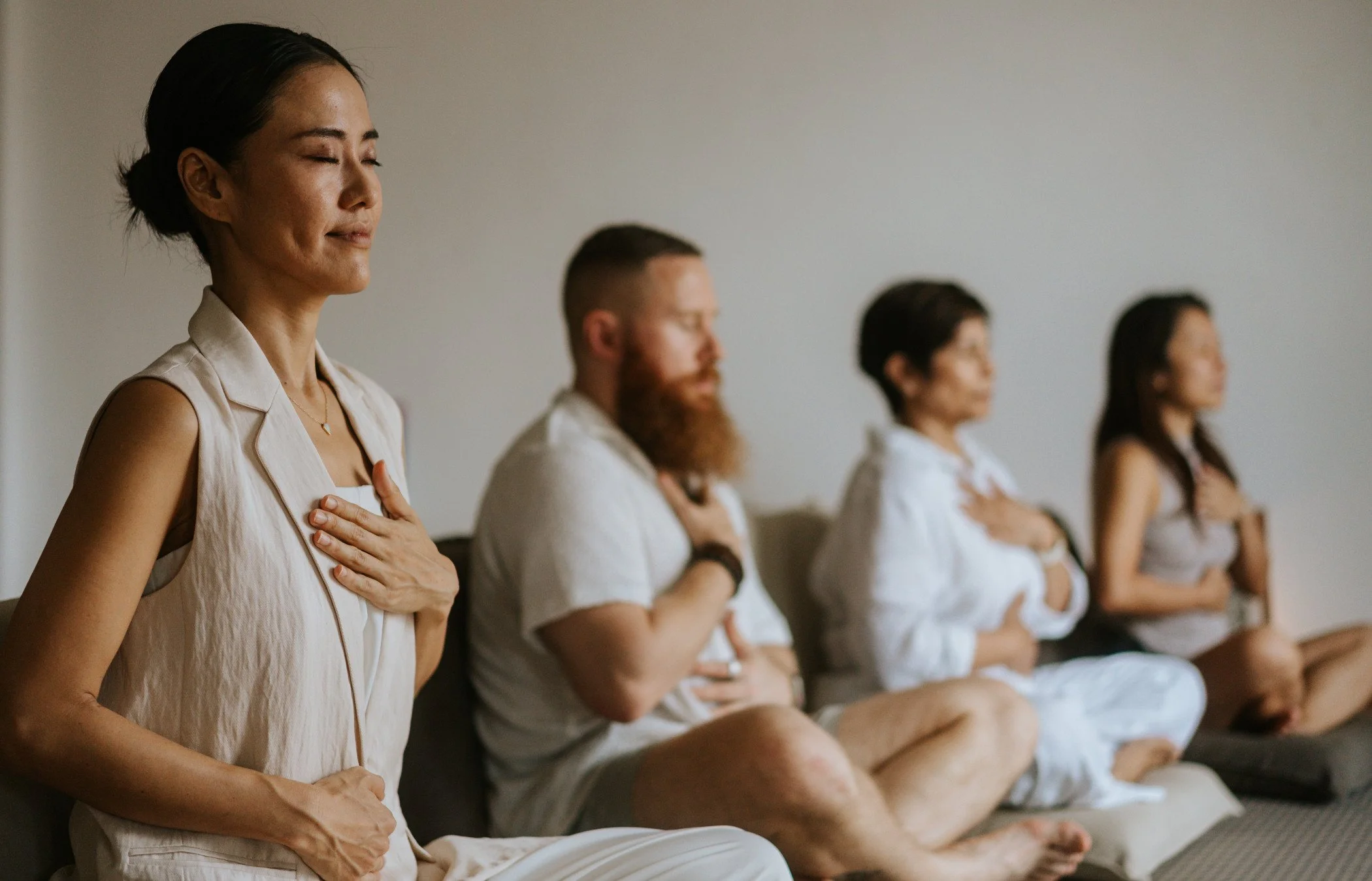 You are led through specific breathing exercises while lying down. You’ll have complete control over your pace, with the freedom to pause, soften, or intensify your experience at any time.